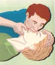 Bunun için, solunumu durmuş olan kişiyi öne doğru eğerek başının olabildiğince aşağıya sarkmasını sağlayın.